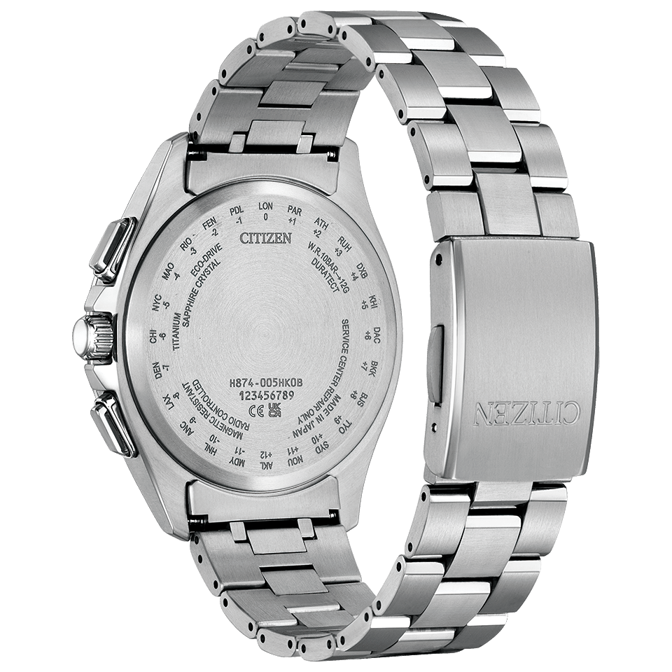 10万年に1秒の誤差と言われる原子時計をもとに送信される標準電波を受信し、日本、中国、アメリカ、ヨーロッパの世界4エリアで自動的に時刻やカレンダーを修正します。
