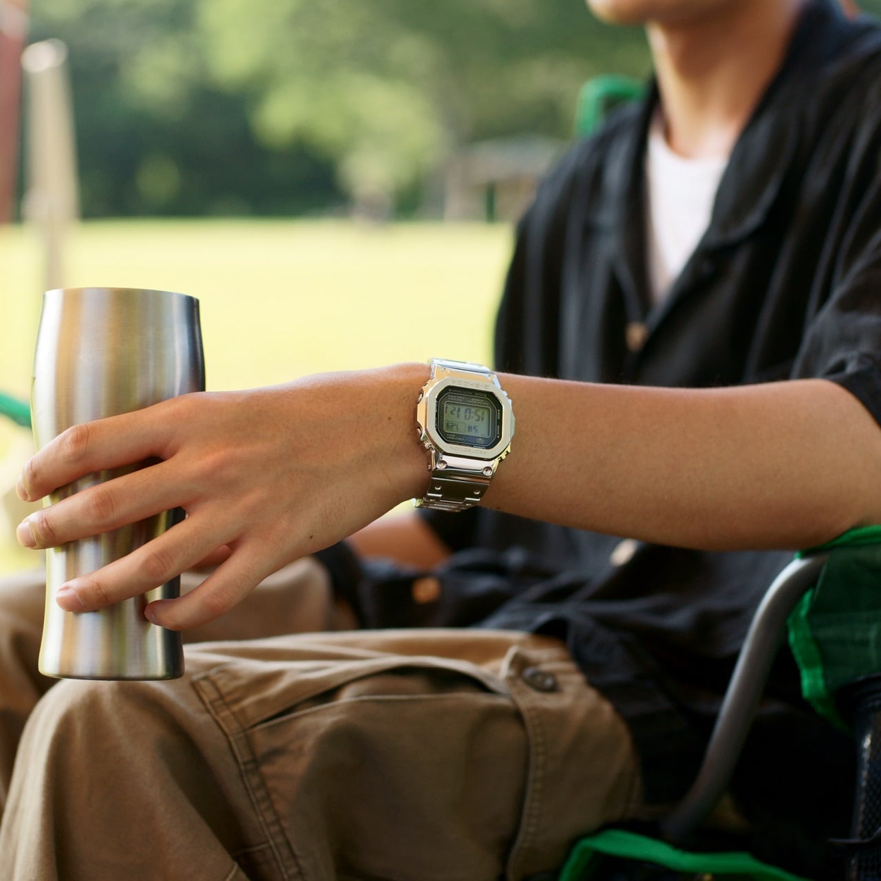 G-SHOCKの原点であるDW-5000をベースにフルメタル化を実現。ベゼル、バンドへ硬質なステンレス素材を採用しました。